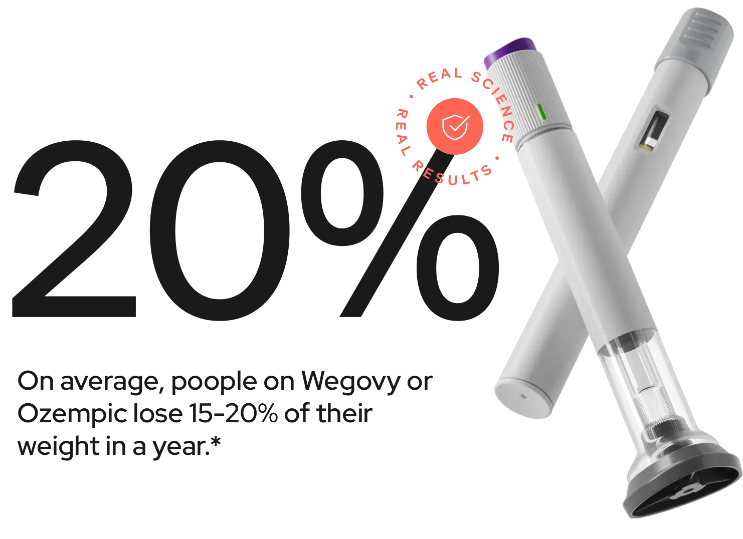 *In separate 68- and 72-week clinical trials studying Wegovy (2.4 mg) and Zepbound (15 mg) in patients without diabetes and with obesity, or overweight with a weight-related condition, the average weight loss was 15% and 20%, when paired with diet and exercise changes (compared to 2.4% and 3.1%, respectively, with diet and exercise alone).